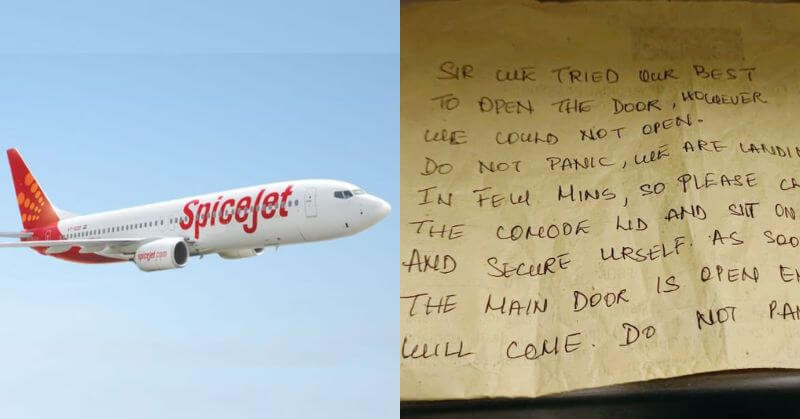 Despite the crew’s efforts to assist the stranded passenger, they couldn’t open the malfunctioning door. In a handwritten note slipped through the door’s gap, the crew reassured the distressed traveler, advising him to secure himself in the confined space and await a SpiceJet engineer upon landing in Bengaluru. In the note, it was written,