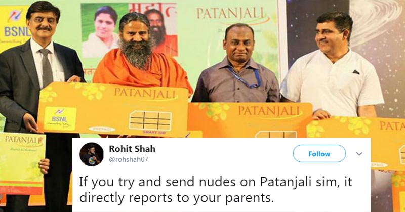 In addition to that, a user took a dig at Patanjali and tweeted, “Ad of #PatanjaliSim be like:- It has the quality of honey, which purifies your voice as #SweetSelfie to ur face. It has high internet speed because it has the virtue of neem leaf which protects it from slow down.@yogrishiramdev @Ach_Balkrishna @BSNLCorporate”.