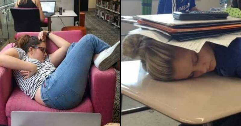 Sleeping while studying or in office is not rare. Who wouldn’t doze off like this? This girl surely was too done with the workload.