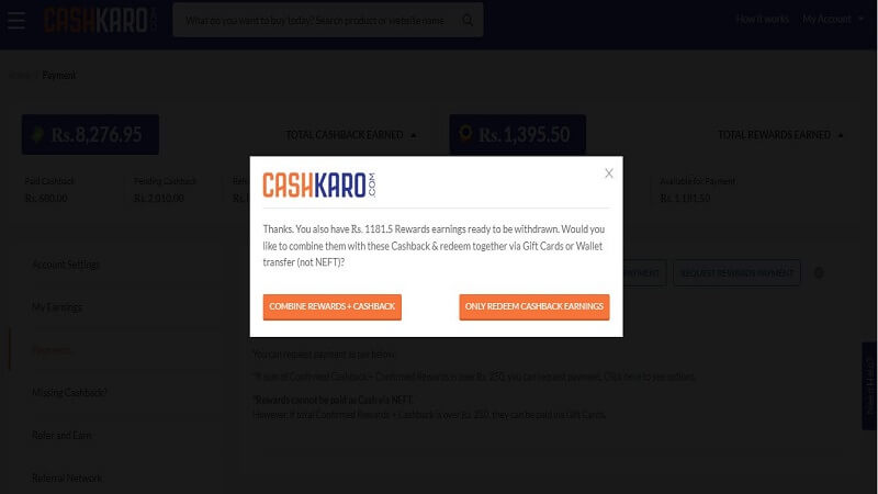 Step 3 – Click On Request Cashback Payment