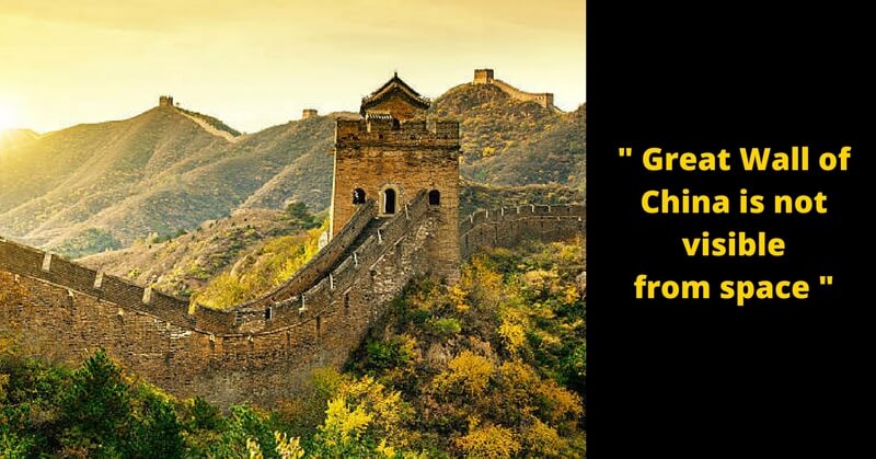 One popular myth about space exploration is that the Great Wall of China is the only human built structure that can be seen from space. But this is not true. The reality is that you cannot see the Great Wall with an unaided eye, even from the low Earth orbits. And certainly, the Apollo astronauts couldn’t see it from the Moon, even though that urban legend has been widely circulated. I suspect a shitty tour guide behind the origin of this myth.