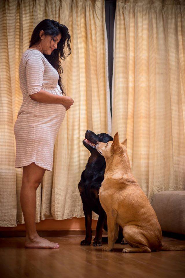 Sanjana reiterated her message with a wonderful pregnancy photo shoot featuring her husband and all her pets. She believes it was her dogs who got her through the tough pregnancy.