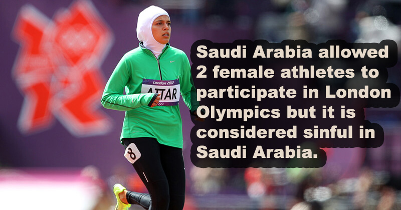 It is a dream of every athlete to represent his/her country in the sports. Although, Saudi Arabia allowed 2 female athletes to participate in London Olympics but women sports are considered sinful in Saudi Arabia.