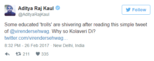 — Virender Sehwag (@virendersehwag) February 26, 2017
