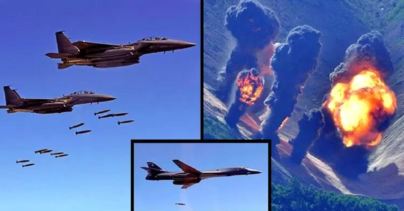 The US bombers dropped MK-84 bombs, which are general purpose bombs of war that forms a crater around 50 feet wide. The bombs are the largest in the Mark-80 series, being used throughout the Vietnam and Iraq wars.