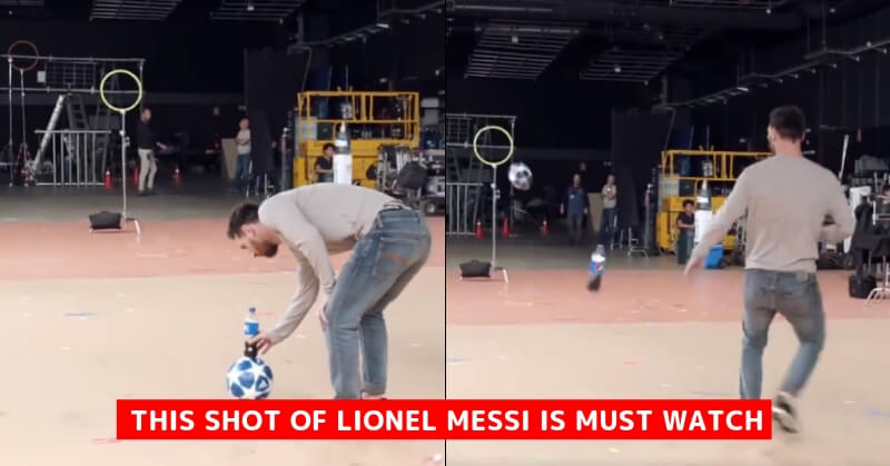 Recently during the advertisement for Pepsi, Messi upload behind the scene video. In the video, he needs to put the bottle of Pepsi on football and need to kick the football in such a way the ball should pass the circle and bottle of Pepsi should lands perfectly on the floor.