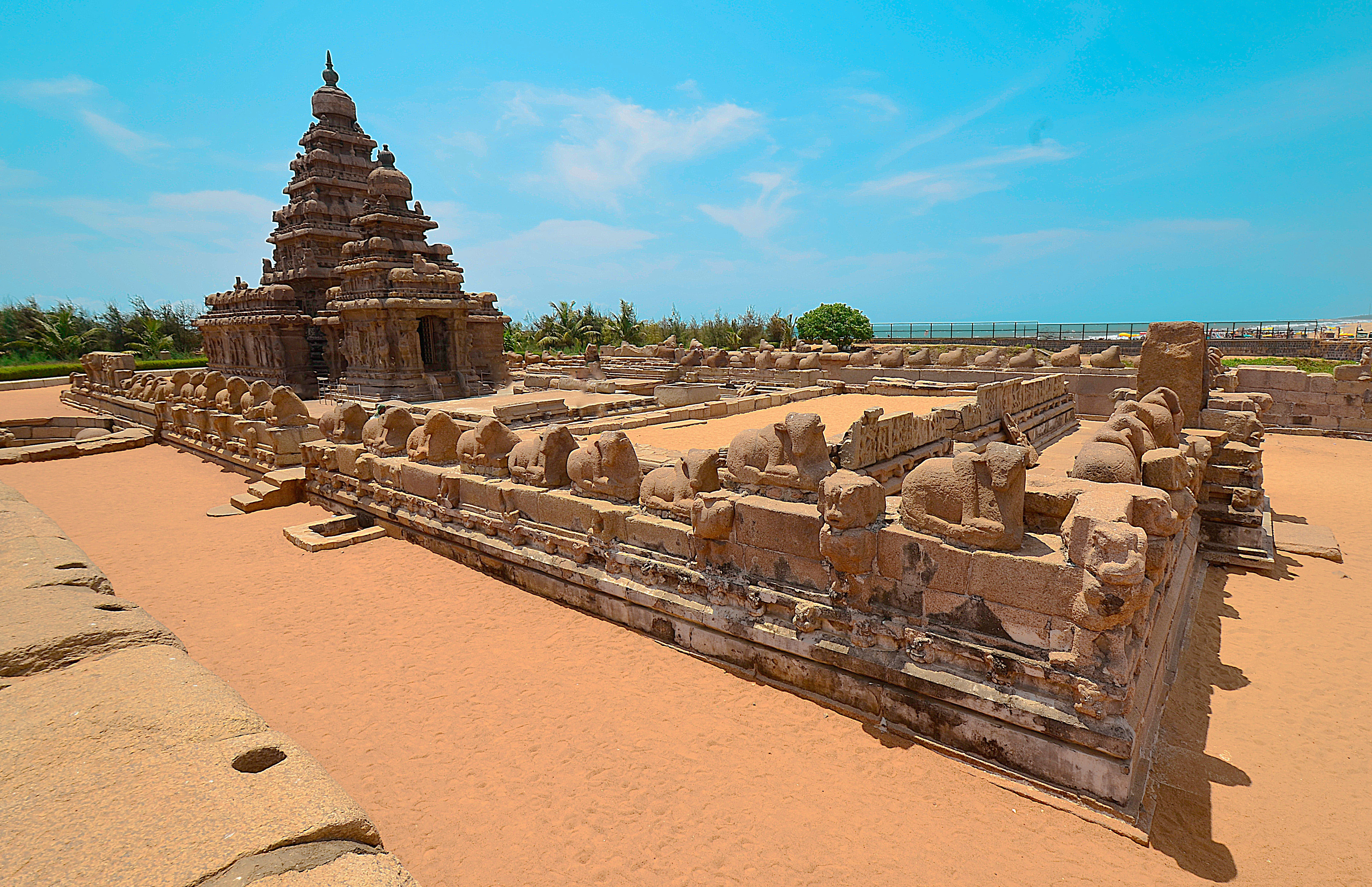 It is located along the Coromandel Coast that carved out from rocks. The Pallava Kings in the 7th and 8th centuries founded the group of monuments at Mahabalipuram. It comprises the chariots, mandapas, and giant open-air relief in addition to the thousands of sculptures. The Mahabalipuram temples are also known as the Seven Pagodas, which were built during the Pallava dynasty.