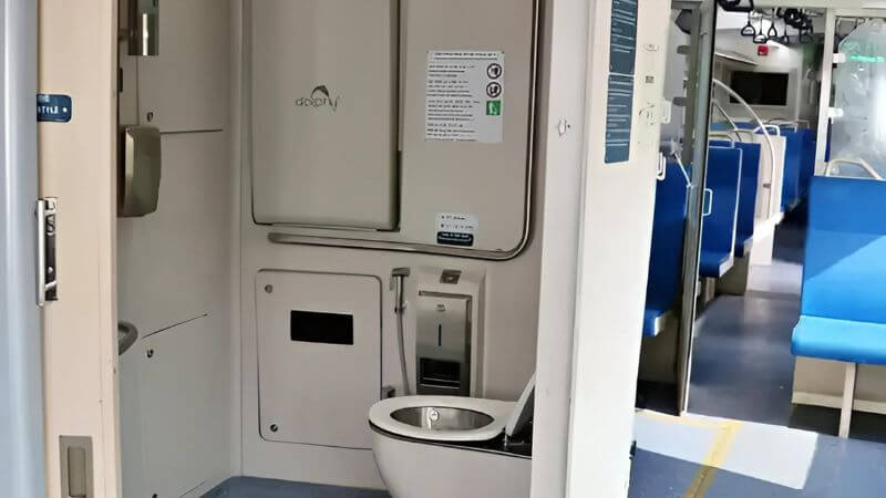 • This new train will have a bio vacuum toilet similar to Vande Bharat express trains. The modular toilets are automatic, and the train will also have a disabled-friendly toilet.