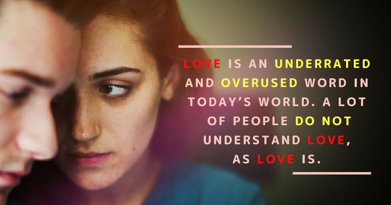 Love is an underrated and overused word in today’s world. A lot of people do not understand love, as love is. The reason for this is love is not supposed to be understood, it is to be felt.