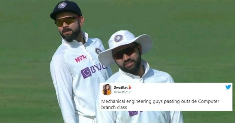 India is playing against England for a four-match Test series. The first Test match is going on at Chepauk Stadium, Chennai. England batsmen played comfortably and scored runs with ease. A photo of Indian captain Virat Kohli and Rohit Sharma from Day 1 is going viral and it sparkles hilarious memes on Twitter. In the photo, Rohit Sharma and Virat Kohli were fielding in the slips. The reactions on their faces when England captain Joe Root hit a ball for a boundary was epic. The moment was captured and turned into a meme fest for the fans on social media.