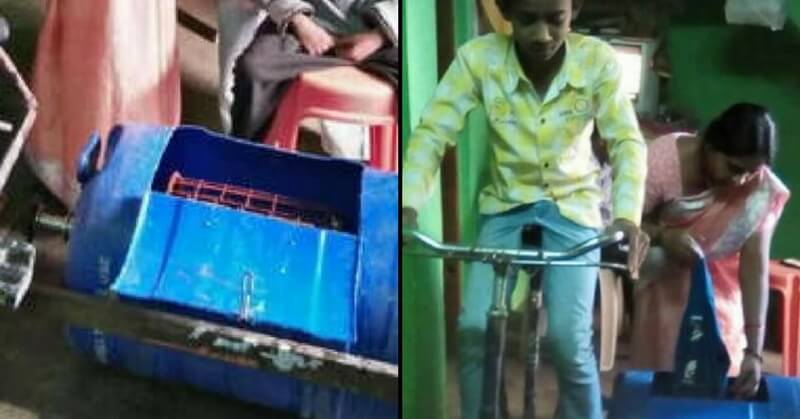 Darshan, the 14-year-old son of a motorcycle mehanic, had made a washing machine from old scrap items. The total cost for making the whole contraption was just around Rs.1700. This unique machine requires no electricity because you can just peddle the cycle and the clothes will wash themselves.