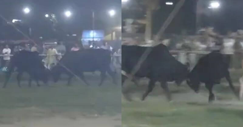 But as soon as a group of stray bulls entered the venue and began to go wild, panic broke out, and the crowd began to flee. Under the enormous Ravana effigy, the cows were spotted locking horns and causing chaos among the people.