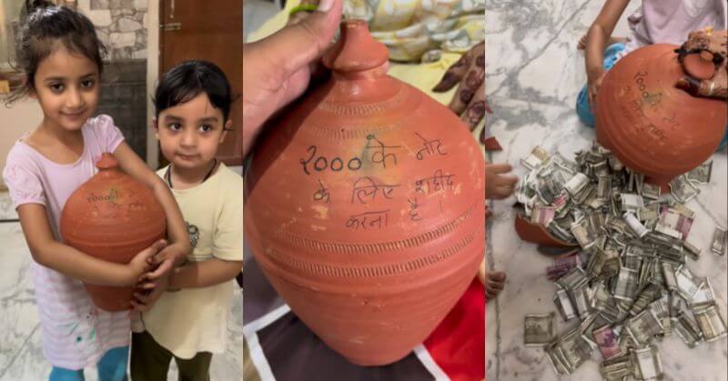 Social media users were in wonder as they watched the girls collect a sizable number of Rs 500 and Rs 2,000 notes, unable to understand the massive savings they had amassed in their piggy banks.