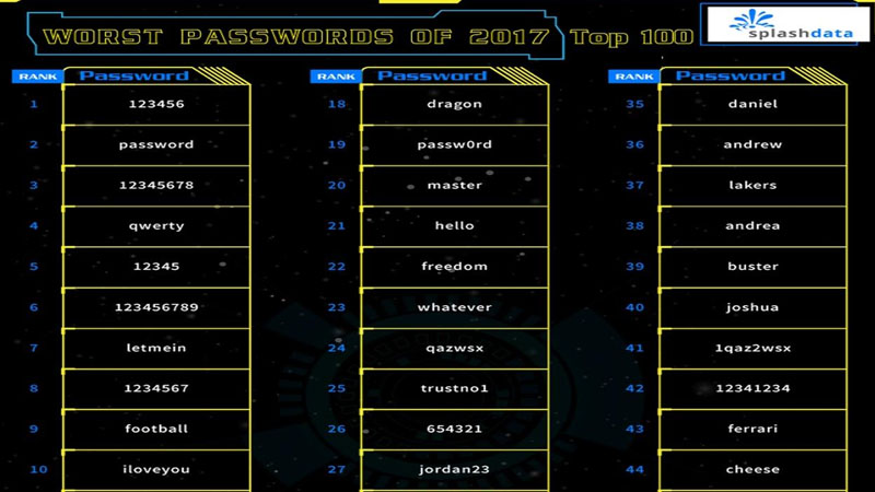 Even the kids are able to guess the easy passwords. This increases the chances of hacking. Splash Data has now generated a list of some weakest passwords of the year 2017. And you surely need to check them out. Have a look.