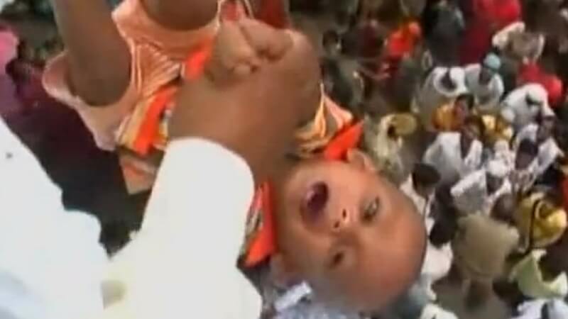 There is an annual tradition in the state of Karnataka where priests will shake and throw babies and toddlers from a tower that is located 30 feet above the ground. The children are caught in a large towel or a blanket when they land they are carried around the area by a large crowd. Every person in the crowd is allowed to touch the child before it is returned to its mother’s arms. The reason for this tradition is to bring good luck to the baby and its family.