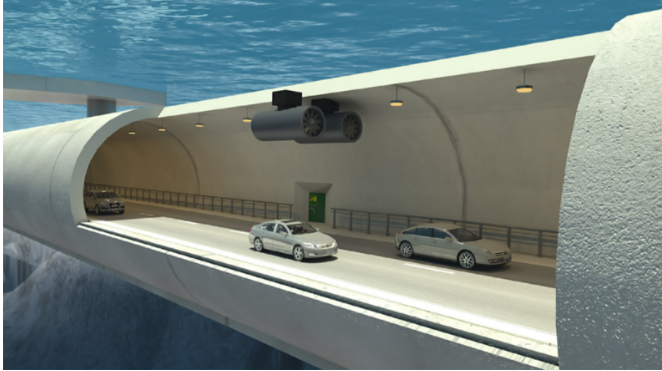 Norway proposed tunnel consists of 4000 foot long concrete tubes that can hold two lanes of traffic. To add more stability, pontoons are bolted with bedrock.