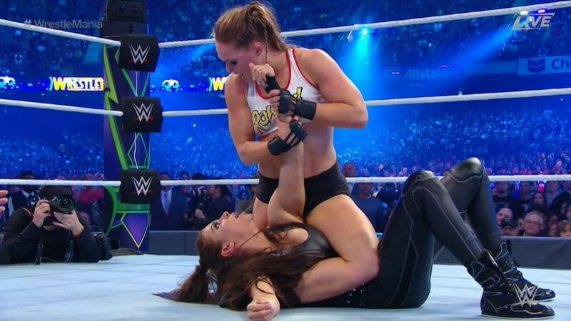 Ronda Rousey who debuts at the grandest stage of all, at the WRESTLEMANIA. Rousey playing her first match made Stephanie tap out to the armbar submission to defeat Triple H and Stephanie.