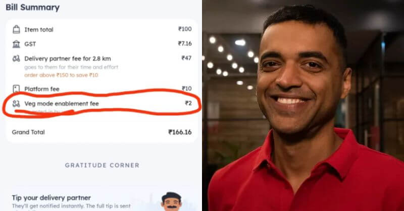 Deepinder Goyal Apologizes For Veg Mode Fees