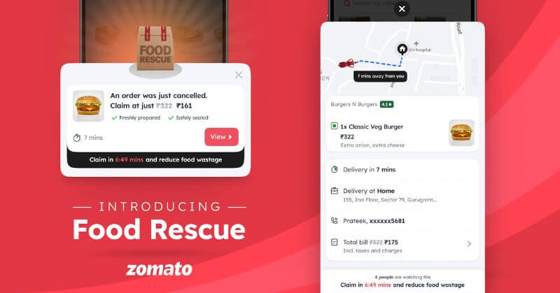 The core concept of Food Rescue is to make canceled orders available to nearby customers at a discounted price. Once an order is canceled, it appears on the app for customers within a 3 km range of the delivery partner carrying the order. By turning potential waste into budget-friendly options, Zomato curbs food waste and allows customers to enjoy fresh meals at reduced rates.